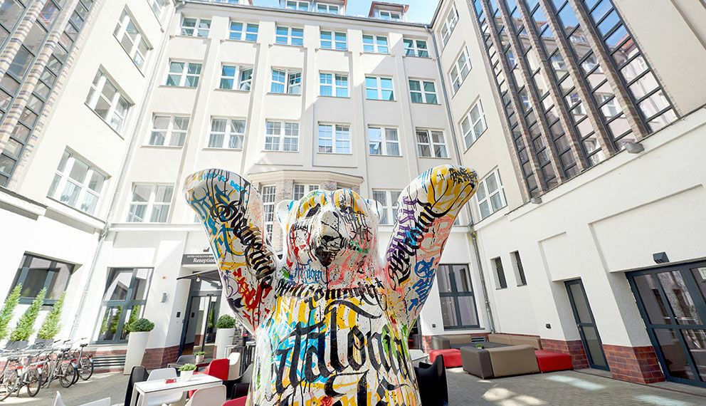 Opened in February 2014 and located in a building dating from 1911 with an austere facade, typical garage entry leading into a quiet courtyard. The hotel has a unique lifestyle charm recreating the essence of Berlin with its industrial style, raw walls and graffitis in each floor created by well-known berliner artists. The 131 hotel rooms are spacious, modern and fully equipped and offer a perfect atmosphere for all kind of travelers.
