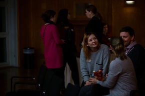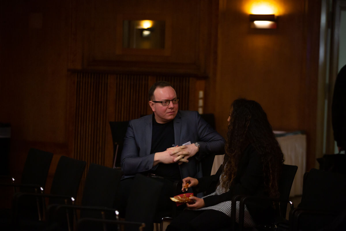 Doch nicht nur die Panelist_innen kamen zu Wort. Fragen der Anwesenden ergänzten und hinterfragten die Ausführungen gleichermaßen interessiert wie kritisch. Die Paneldiskussion mündete nahtlos in einen abschließenden kleinen Empfang, bei dem sich alle Teilnehmenden noch einmal in geistreichen und inspirierenden Konversationen zum Themas des Abends austauschten.
