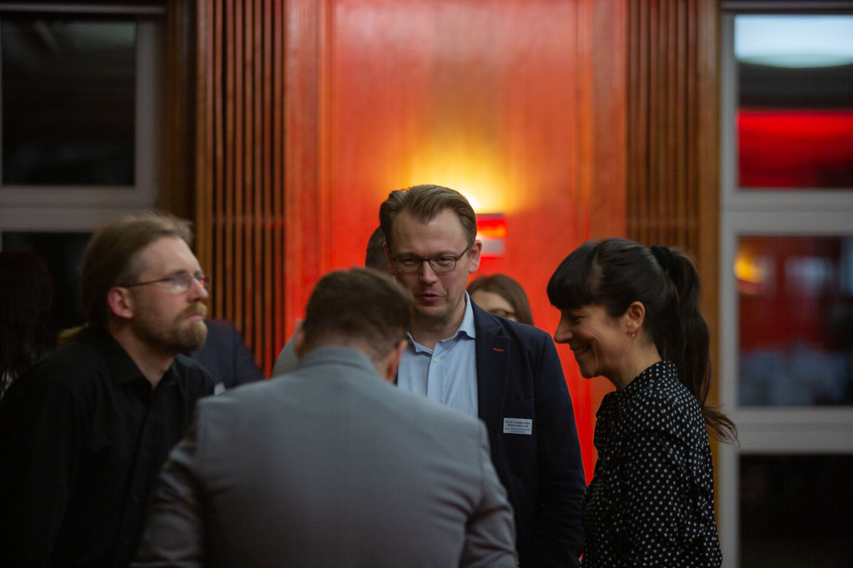 Doch nicht nur die Panelist_innen kamen zu Wort. Fragen der Anwesenden ergänzten und hinterfragten die Ausführungen gleichermaßen interessiert wie kritisch. Die Paneldiskussion mündete nahtlos in einen abschließenden kleinen Empfang, bei dem sich alle Teilnehmenden noch einmal in geistreichen und inspirierenden Konversationen zum Themas des Abends austauschten.