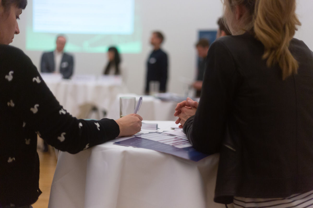Im Anschluss an die Paneldiskussion konnten die Teilnehmenden in einem World Café ihre Fragen an die vier Gäste sowie an Philipp Künstle, den Projektleiter des Masterstudiengangs, stellen.